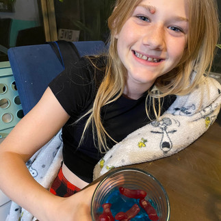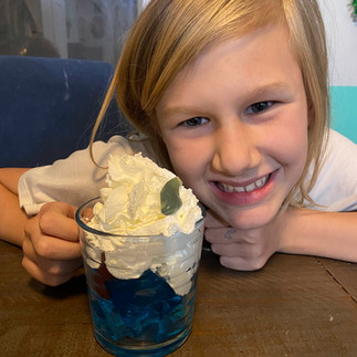 It was a little hard to come up with a dessert on this one, which isn't usually the case. I eventually settled on making blue raspberry Jell-O that we still had lying around from a previous theme. I cut the Jell-O up into cubes, placed them in a glass and added some whipped cream on top. Then the girls were able to pick some gummy sea creatures and add them into it. Since Aquaman can control sea creatures it made sense. Also, Jell-O and gummies are always a winner around here so this went over well!