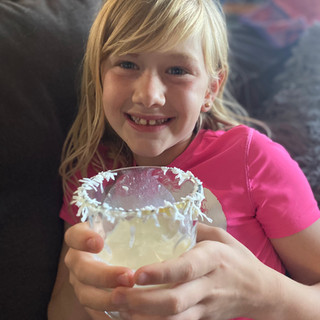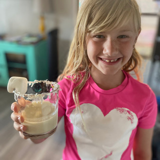 The drink was cute and I knew it was not going to be a hit with the girls. Mostly because it contained coconut and the girls are not crazy about it. I found the recipe on Pinterest and it was the Cottontail martini (of course we made it with no alcohol for the girls) It was perfect for our theme as it looked like a little bunny! It contains vanilla vodka, coconut rum, half and half, cream of coconut and a little bit of pineapple juice. To top it off you add coconut to the rim and a marshmallow for the bunny tail! Tyler and I thought it was delicious! Something I would probably have never tried otherwise. Girls took one sip and that was all.