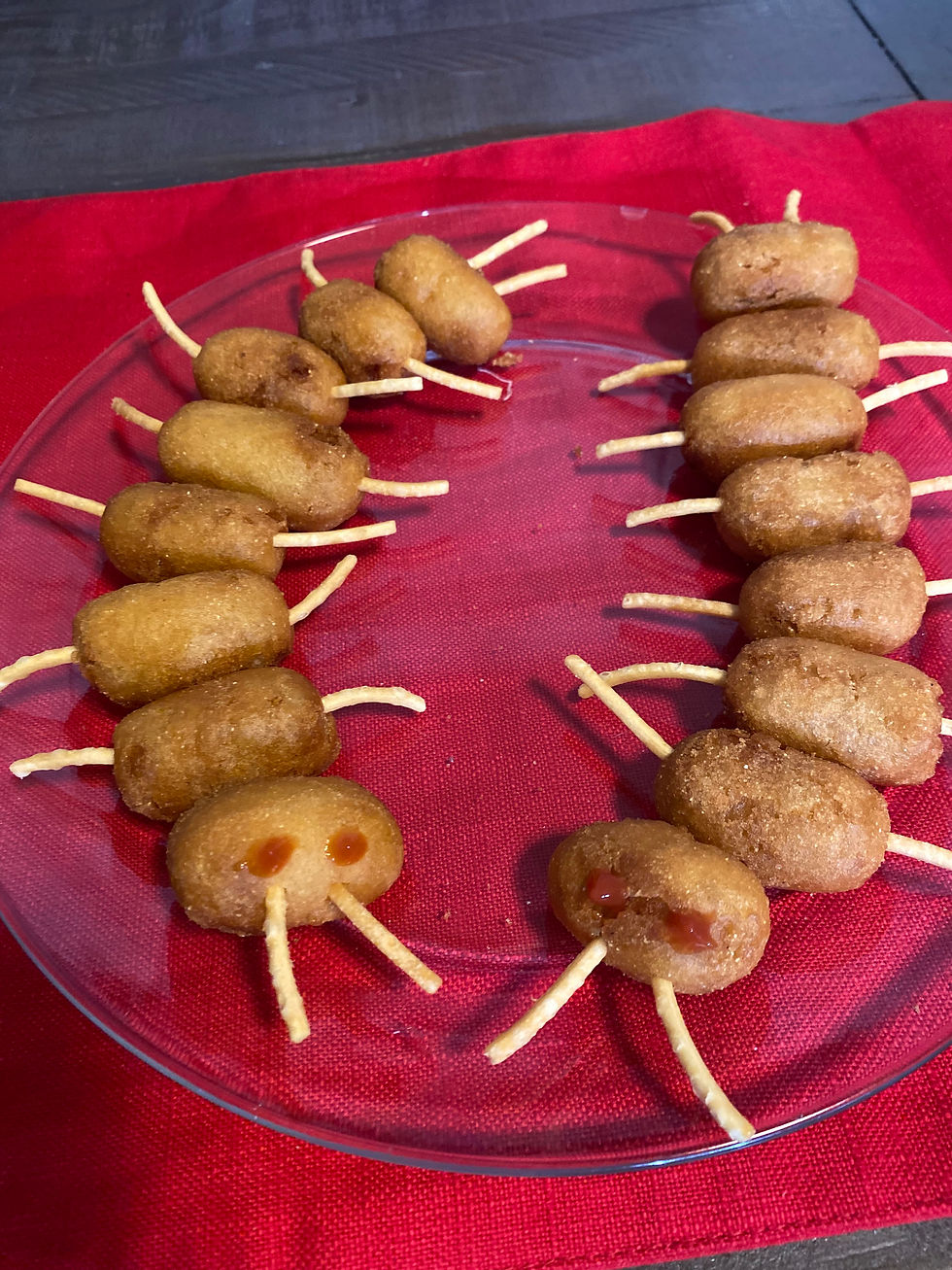 Let’s start with the main meal. The basic premise of the movie is that aliens come to Earth in forms of video game characters. The first alien were centipedes and so we built off that. We turned simple corn dogs and chow mein sticks into centipedes! The girls got a kick out of this and gobbled them up. I might have to make corn dogs into centipedes more often!