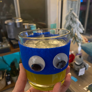 Our drink is called the Secret of the Ooze. It was made with OJ, Ginger Ale, pineapple juice, Sprite and some added rum for the parents! We wanted it to look like the lime green oozey color that mutates the turtles into what they were. I also did a quick craft on this and made the infamous colored eye bands that they wear. We each represented one of the TNMT while drinking a refreshing drink!